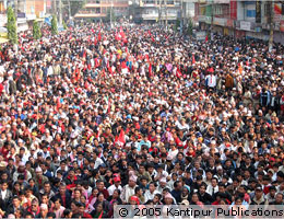 A sea of people for a sea change ray ha ha - http://www.kantipuronline.com/# euta main road ko chok ma 2-3 hajar bhada ka tattu haru lai jamma garera gareko sabha ma sea of people rey ha ha ha reminds me of a storm in a tea cup may be kantipur is blindly furious with the government for taking away its equipment. Whatever its case may be for being angry with the government, it should not lose sight of its moral obligation of reporting the fact, mnot distorting it.