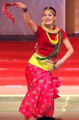 As usual Nepali beauty(??) will return empty handed. But here is she in the talent round, showcasing Tradition Nepali attire "gunyu cholo" with a folk number dance.