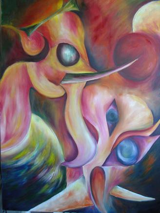 Amazing pieces of your mind! There's a very strong connection between your mind and your brush. The pieces evoke mystery, a sense of darkness or emptiness. They also seem to evict a sense of fear, hence they turn away from the onlooker. "Supreme Power" on the other hand depicts the many forms of strength - reminds me of Lord Ganesh. But they are excellent pieces. Keep painting your thoughts. I like it.