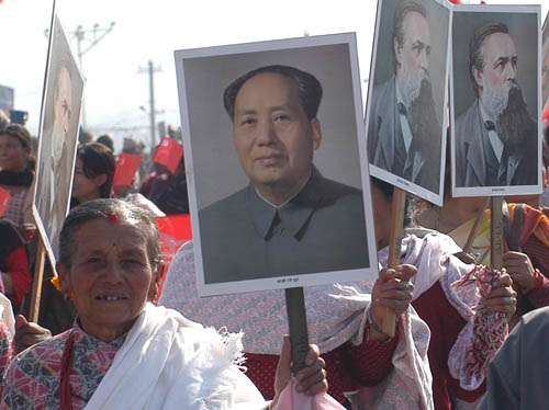 that was not karl marx but fred angeles. so its a pity that one makes fun of an old woman saying `hamro pyaro raja ko picture`. cpn uml decided not to hang any pictures of `internationally big communists`. guess those women are from bhaktapur cause the majdur kisan party is pretty strong there. and mao tse tung is popular for his farmers populist revolution. someone enjoying his life in a rich capitalist country might find it ridiculous to go out with mao`s pictures, but it is very relevant that those farmer jyapus in a poor capitalist kingdom of nepal to go out with mao`s picture. it`s all a matter of their choice. i wouldnt do that, u might not do that, but respect what people do. u might pretend to but dont know their story, i can bet on it!