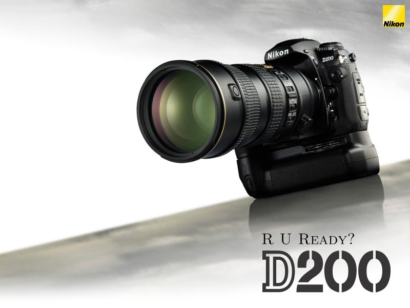 Nikon D200 with an optional battery pack and a 70-200 F2.8 VR(vibration Reduction) lens.