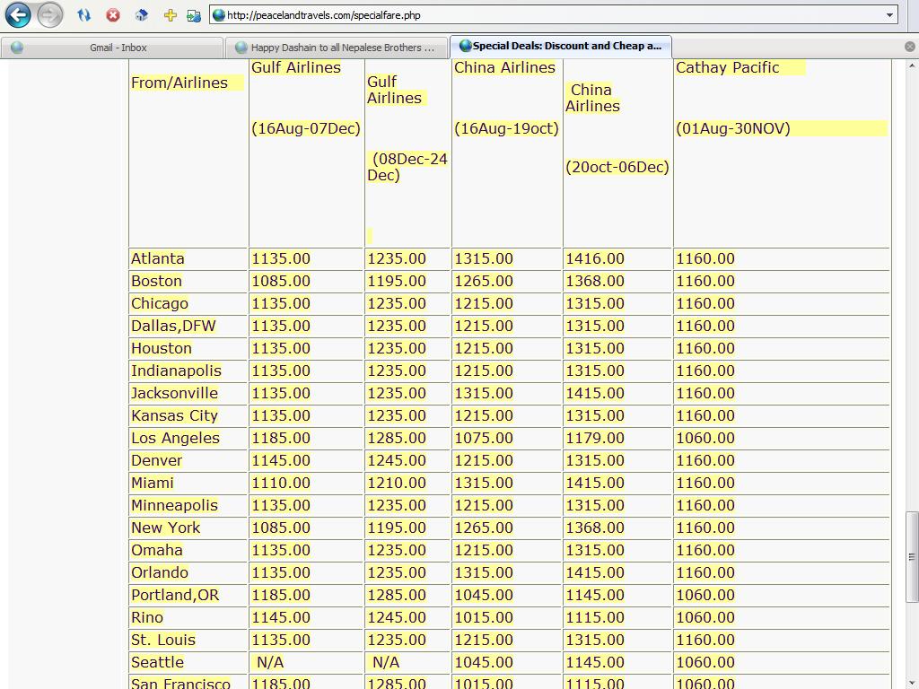 DEAR ALL PLEASE CONTACT SARALA SHARMA FOR BEST DEAL TO NEPAL WORLDWIDETRAVEL 202 659 6430 EXTN 104 1 800 343 0038 EXTN 104 THANKS