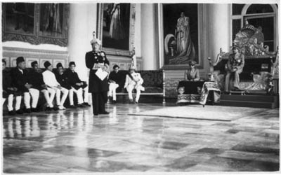Who told you that ..... "Nepal did not have Democracy 14 years ago." When Rana Regime "Dictetorship" collasped in 1951 and established Democratic People systems in Nepal. Look at the photo. Swearing in ceremony of first Government after the dawn headed by Prime Minister Mohan Shamsher Janga Bahadur Rana in 1951. In the picture from Right to left are seated Late HM King Tribhuvan Bir Bikram Shah Dev, the then Crown Prince Mahendra Bir Bikram Shah, Prime Minister Mohan Shamsher JB Rana, Home Minister B.P. Koirala, Ganesh Man Singh and others. Only key matter was those are crooks Nepalese since then until now. These people do not deserve Democracy and Freedom.