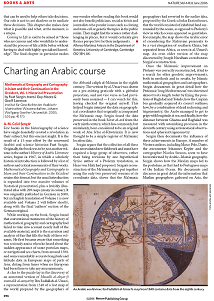 Charting an Arabic course A. M. Celâl engör1 ARTS REVIEWED - Mathematical Geography and Cartography in Islam and their Continuation in the Occident, Vol. I. Historical Presentation by Fuat Sezgin, translated by Guy Moore and Geoff Sammon Institut für Geschichte der Arabisch-Islamischen Wissenschaften, Johann Wolfgang Goethe-Universität: 2005. 636 pp. 175 Few books in the historiography of science have single-handedly created a revolution in their subject, but this one just might. It is the result of a 15-year effort by the renowned Arabist and science historian Fuat Sezgin. Originally, the book was to be just another volume in the author's History of Arabic Literature series, begun in 1967, in which a scholarly historical introduction is followed by a list of authors and critical assessments of their works. Mathematical Geography and Cartography in Islam and their Continuation in the Occident retains this format, but the usual introduction is expanded into two massive volumes of 'historical presentation', plus a lavishly illustrated atlas with 209 maps (many in colour). It was originally published in German in 2000, but an English translation of Volume 1 is now available and Volume 2 will follow shortly, along with the final 'authors' section of the German original. While working on the book, Sezgin found that conventional treatments of the history of mathematical geography and cartography had failed to take into account nearly half of the available material, and it is the narration and analysis of this that fills the bulk of these volumes. He first became aware that something was seriously amiss when he heard about the sudden appearance of some portolan maps, or navigational sea charts, from around 1300, and some remarkably accurate longitude and latitude data in European maps of parts of Asia, dating from times when no European had been there to take any measurements. A clue to the puzzle lay in the discovery of an annotated version of Masalik al-ab ar fi mamalik al-am ar by Ibn Fadlallah al-Umari, a representation from 1340 of a lost map of the world prepared by the geographers of the Abbasid caliph al-Ma'mun in the eighth century. The version by al-Umari was drawn on a pre-existing graticule with a globular projection, and not vice versa as had previously been assumed — I can vouch for this, having checked the original myself. This helped Sezgin interpret the data on geographical coordinates that originally accompanied the Ma'munic map. Sezgin found the data preserved in the book Sûrat al-ard from the early ninth century, which has commonly, but mistakenly, been considered to be an original work of Abu Ja'far al-Khwârizmî. It is now thought to be a simple register of Ma'munic location data. TOPKAPI PALACE MUSEUM An Arabic world view: Ibn Fadlallah al-Umari's map from 1340 contains data from the eighth century. Sezgin argues that the collection of all these data necessitated new fieldwork and must have required a large group of observers, rather than being revisions by one hypothetical Syriac author of a Ptolemy translation, as Hans von Mzik had proposed. Sezgin's reconstruction of the Ma'munic map, put together using the only two preserved versions of its coordinate data, shows that the Ma'munic geographers had reverted to the earlier idea, proposed by the Greek scholar Eratosthenes, that the world consisted of inhabited land surrounded by the ocean, as opposed to Ptolemy's view in which oceans appeared as giant lakes. For example, the map shows the Arabic error of considering the Malaysian peninsula to be a vast elongation of southern China, but separated from Africa, as seen in al-Umari's map. An even older version of the map discovered by Joseph Needham corroborates Sezgin's reconstruction. Once the Ma'munic improvement on Ptolemy was correctly reconstructed, it led to a search for other geodetic improvements, both in methods and in results, by Islamic mathematical geographers and cartographers. Sezgin documents in great detail how the Ptolemaic 'long Mediterranean' was shortened almost to its length today by fixing the positions of Baghdad and Toledo; how the Caspian Sea gradually acquired its correct outlines; how, by a combination of dead reckoning and trigonometry, the Arabs managed to get to grips with longitude at sea; and finally, how the distance between Ghazna and Baghdad was measured with astonishing precision in the eleventh century using astronomical observations and spherical trigonometry. Sezgin then documents the influence of these achievements in Europe. A number of Western authors, including Marco Polo, Dante, the astronomer Johannes Kepler and the cartographer Nicolas Sanson, seem to have been informed by Arabic–Islamic geography.