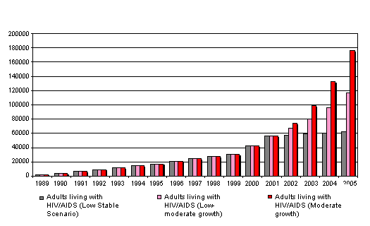 Was going through this page... its really scary ... anyone involved in AIDS prevention .. can you please put light on this please... http://www.youandaids.org/Asia%20Pacific%20at%20a%20Glance/Nepal/index.asp The Potential for a Rapid Increase in HIV Prevalence Behavioural and sero-prevalence data indicate the high potential for a generalised epidemic in Nepal. In the absence of effective interventions, even a "low to moderate growth scenario" would make AIDS the leading cause of death in the 15-49 year old population over the coming years. For Nepal, this would mean that around 100,000-200,000 young adults will become infected and that overall 10,000-15,000 annual AIDS cases and deaths due to related illnesses may be expected. The following table shows three scenarios: a "low-stable" scenario, with the sero-prevalence levelling off at 0.5% in 2005; a "low-moderate growth" estimate with a prevalence rate of 1% in three years time; and finally a "moderate growth" model, reaching 1.6% in 2005. The difference between the three scenarios is the actual gain in lives, provided that the response to the epidemic in Nepal is effective enough to impact on the development of the epidemic.