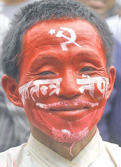 "Loktrantik Ganatantra" bhanda jhalakka samjana aayo yo photo ko, which was taken during first mass rally at Ratnapark on the second of June organized by Maoists after the success of Janaandolan II, which was posted on online Hindustan Times edition. I like the expression of this countryman (looks like, rather than a cadre), imported by Maoists in the rally from outside Kathmandu, I guess.