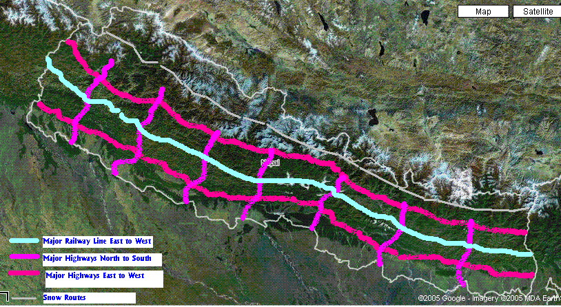 Hi guys, This is just an imaginary highways system in Nepal. Please provide the feasibility feedback on these highways and railroad system. What parts does it need improvement on ? What are your suggestions ? I have used google maps to view the geographic Thanks, achyut dhakal