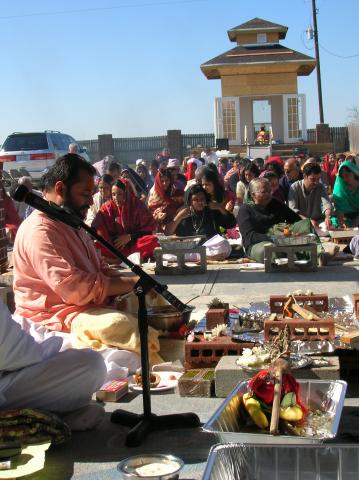 Picture: Nepal born Guruji H.H Shree 108 Tahal Kishorji Maharaj performing the Maha Yagna, infront of the newly built Shri Pashupatinath Mandir, Houston, TX.