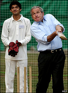 Bush plays cricket in Pak