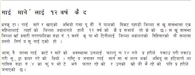 I oppose cow slaughter. There should be a severe punishement by law to prevent cowslaughter. But, we all differ or concur in our views. Thats what this sajha is for I suppose. Panga linu parla jasto chha , saathi haroo sanga. I am for 12 yrs prison.