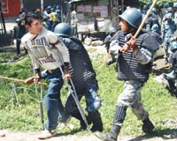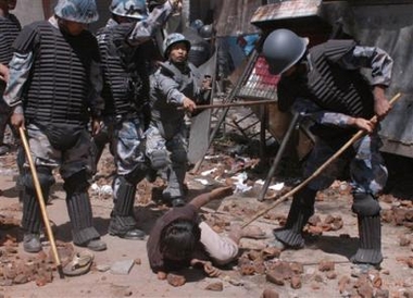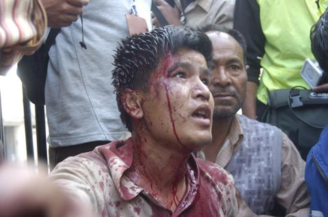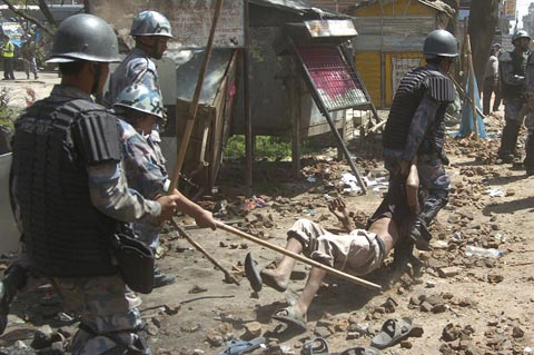 Was that guy in the crutches also throwing stones toward police?!! royal regime has gone mad! That SP called madhav thapa is an asshole war criminal.