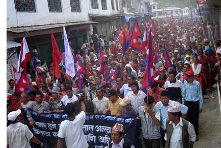 this is the only one pic i managed to find... protestors with nepalese flag... Its frm myagdi..