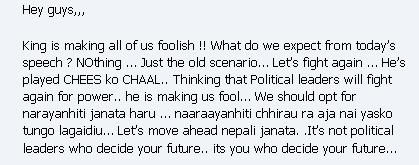 NOTE: The opinions here represent the opinions of the individual posters, and not of Sajha.com. It is not possible for sajha.com to monitor all the postings, since sajha.com merely seeks to provide a cyber location for discussing ideas and concerns related to Nepal and the Nepalis. Please send an email to [email protected] using a valid email address if you want any posting to be considered for deletion. Your request will be handled on a one to one basis. Sajha.com is a service please don't abuse it. - Thanks.