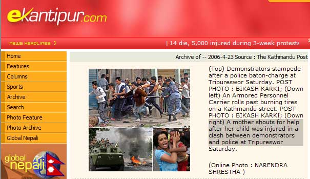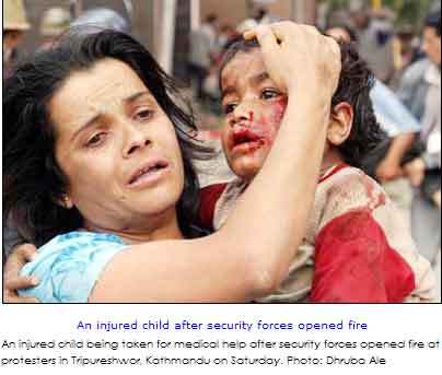 hera no more .... yea ma pare baini... mathi hamro gwajo man le....higllight gareko ma demonstrators ra polic ko bicha ma ..jhada ma pareko chha bacha....aba demonstrators haro le dhunga ni hanekai cha...aba tyaha agi euta police ko ni ragat bageko foto thyo..aba aile chaina...testo ...biased bhae pachi ta afno points ni bhanna man lagdaina................ huldanga ma testo huncha....huldanga bhaneko tehi ho so i say bacha lai yas bata tadha rakhna parcha! timi haroo aile ......neta haroo ko kuragarya hiana bhanchau..bholi gaera yahi neta le hami lai lead garchha...ani desh lai ruwauchha......i know king ni na ramro cha...but all m tryna say is..king lai min power diera bhaeni.....rakhnu parcha...kinaki raja na bhae ma chor daka haro ko manomani hcalcha.......raja le afai ta lutyo dhukuti but i bet he wont be able to stand......arule choreko...sop yaha 3 wota daka lai ek arkako ..track ma rakhna ko lai bhaeni rakhna jaroo ri dkehincha jasto malai lagcha..... ...neway.....aile bholi hamilai kalle lead garcha ta bhanne kura ma ni jod diunu parcha...bholi desh ma koi lieader chaina bhane des ko k haal huncha bhane kurama jod dina jaroori... anyway..i gota tons of assgiment which is due 8 in the morn....so m leaving...but yes...children shud be kept away from the violence thats their right...!!