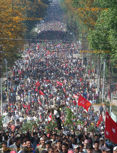 Derosh, do you know what a cat walk is? Tero lagi hola Khate moro... Afai chappal nalai, nango khali khutta, kunai ghaite bachha lai uthayera, uddhar garira keti ma kehi nadekhera tainle Catwalk dekhis hai? Thuikka mora... AznshawtY I think you wanna be guru of Photoshop and want to comment on every pic you see from the Andolan, guru check this out and tell me if its Photoshop or not.... Smart way to divert attention of the people huh? Yiniharu le ek ek choti pani chimatyo bhane you ......
