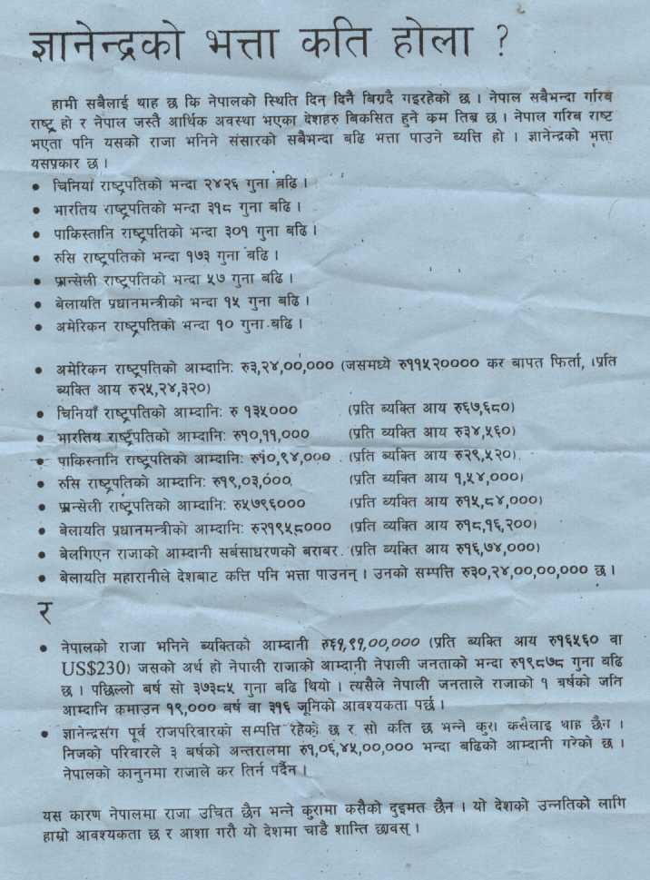 . Well Bathroom I'm not saying any of our Netas are good. That is why Nepal is still 200 years behind. If you read my thread, than I'm always against Netas and Maoists. No body to trust. However the questions the time I post my thread was about king stopping India and I said if India really wants to take Nepal than they can with or without king. Some were arguing that if we remove King India will take Nepal and make it another Bihar. That's just insane. I'm not going to defend any of our fu(ked up netas and give answer about the good thing they have done, coz there is not any. However to Mr. Shikar who thinks King is a priest answer to the following attachment. Now don't say that is not true, coz we all know it is true: