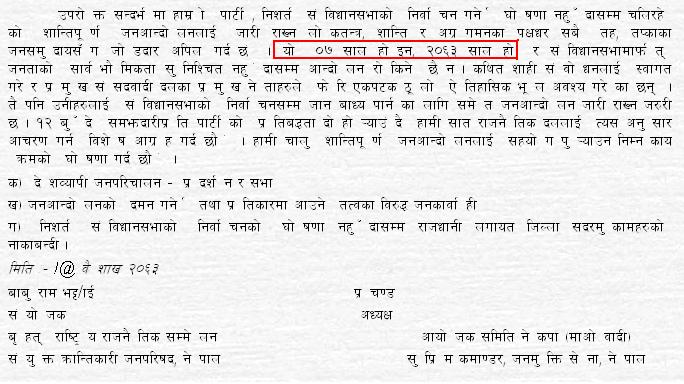 काठमाडौं, बैशाख १२ नेपाल कम्युनिष्ट पार्टर्ीीमाओवादी) द्वारा आज जारी गरिएको प्रेस वक्तव्य नेपाल कम्युनिष्ट पार्टर्ीीमाओवादी) केन्द्रीय समिति प्रेस वक्तव्य आधुनिक नेपालमा ०७ सालको दिल्ली संझौतादेखि शाही सामन्ती राजतन्त्रबाट पटक-पटक धोका पाएको कटु अनुभवबाट शिक्षा लिएर यसपटक नेपाली जनताले संविधानसभाको निर्वाचन र लोकतान्त्रिक गणतन्त्रको पक्षमा विश्वलाई नै चकित पार्ने पहलकदमीको पर््रदर्शन सडकबाट गरिरहेका छन् । निशर्त संविधानसभामार्फ् दस वर्षलामो गृहयुद्धको शान्तिपर्ूण्ा र अग्रगामी समाधान गरिने ने.क.पा.-माओवादी) र सात संसदीय राजनैतिक दलका बीचको १२ बु“दे समझदारीले आम नेपाली जनतामा राजनैतिक विश्वास र उर्जा प्रदान गर्यो । त्यही विश्वास र उर्जाको बलमा जनसमुदायले सामन्ती राजा र राजतन्त्रका विरुद्ध आफ्नो अपार घृणा र आक्रोशलाई छताछुल्लरुपमा गाउ“-शहर, पहाड-मधेश र स्वदेश-विदेश सबैतिर व्यक्त गरिरहेका छन् । तर, ०७ सालमा झैं फेरि एक-पटक नेपाली जनतालाई फुटाउने र आफ्नो निरंकुशतन्त्रलाई बचाउने नया“ चाललाई वैशाख ११ गतेको ज्ञानेन्द्रको संवोधनले अभिव्यक्त गरेको छ । त्यो कथित संवोधनले न जनताले सडकमा संविधानसभा र गणतन्त्रका पक्षमा घन्काइरहेको नारालाई संवोधन गरेको छ न १२ बु“दे समझदारीलाई नै संवोधन गरेको छ । त्यो संवोधनको सारतत्व भनेको राजतन्त्रका विरुद्ध दन्किरहेको जनआन्दोलनको ज्वालामा पानी खन्याएर आफ्नो "रक्षा" गर्ने षडयन्त्र रहेको कुरा स्पष्ट छ । प्रक्रियागत दृष्टिले शाही घोषणामार्फ् संसदको पुनर्स्थापना गरेर प्रधानमन्त्रीको नियुक्ति र खारेजी मात्र होइन अब गैहृ कानुनी ढंगले संसदकै नियुक्ति खारेज गर्ने निरंकुश शासकको नया“ नजिर ज्ञानेन्द्र शाहीबाट स्थापित गरिएको छ । यसले लोकतान्त्रिक पद्धति र जनताको सर्वोच्चताका विरुद्ध घोर अपमान र उपहासलाई व्यक्त गर्दछ । अतः सार र रुपमा दुवै दृष्टिले कथित शाही घोषणा नेपाली जनताका विरुद्ध धोका र षडयन्त्र भएकाले हाम्रो पार्टर्ीीयसलाई दृढतापर्ूवक खारेज र अस्वीकार गर्दछ । हामी यहा“ यो कुरा पनि स्पष्ट गर्न चाहन्छौं कि सात संसदवादी राजनैतिक दलहरुमध्ये जुन, जुन दलले यो कथित शाही संवोधनको स्वागत र र्समर्थन गरेका छन्, उनीहरुले वस्तुतः १२-बुंदे समझदारीलाई तोड्ने तथा नेपाली जनताको भावना र मर्ममाथि विश्वासघात गर्ने काम गरेका छन् । किनकि १२ बु“दे समझदारीको प्रमुख राजनैतिक चुरो संविधानसभाको निर्वाचन हो । निश्चय नै संविधानसभासम्म पुग्ने प्रक्रियामा रहेको अन्तर समझदारीपत्रमा स्पष्ट उल्लेखमात्र गरिएको छैन । अपितु छलफल गर्दै गएर प्रक्रियालाई समेत एउटै बनाउने कुरा स्पष्ट शब्दमा राखिएको छ । त्यो अवस्थामा ज