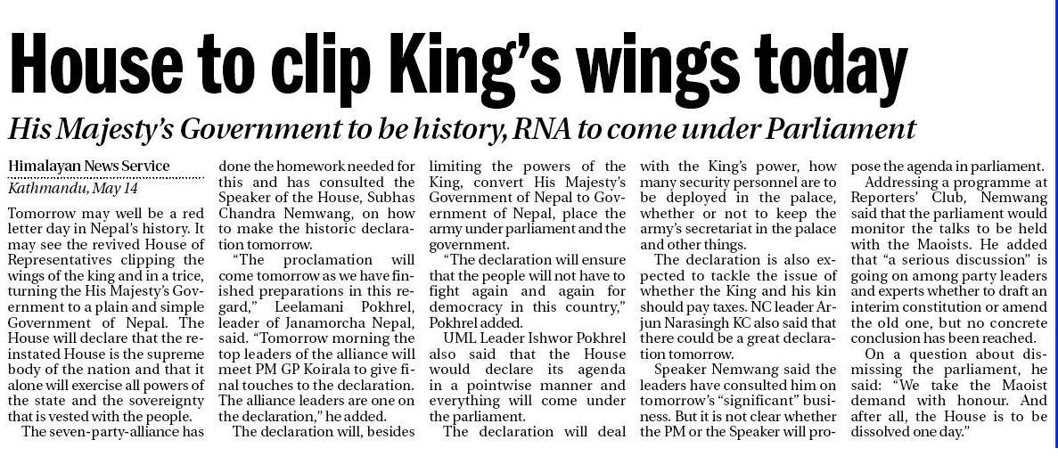 Source: Tomorrow's The Himalayan Times daily
