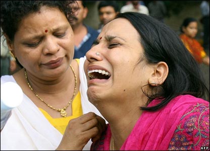 Hey guys, We dont have to fight with each other in the forum. Whoever is the culprit is having a wine and shine at his den.......and thier mentality cannot be changed, but they will keep brainwashing others mind to carry thier path. It is like a story I read recently, once a criminal in Washington, who spent 90% of his life in jail got chance to break the jail and went out. But called the cops in few days and surrenered, saying he just cannot survive the living in open world, freely living people are just wierd for him and he just couldnot survive in the outside world. Similarly those fanatics cannot sleep unless they see thier plans of killing people are getting succes. I dont know how many more are going to be sacrificed for the very unknown cause of such fanatics. I really feel sad for the families. The cry of the lady in the picture is so gruesome, we dont know whether she lost brother, husband , parents, sister, son, daugher or all of them. God bless.