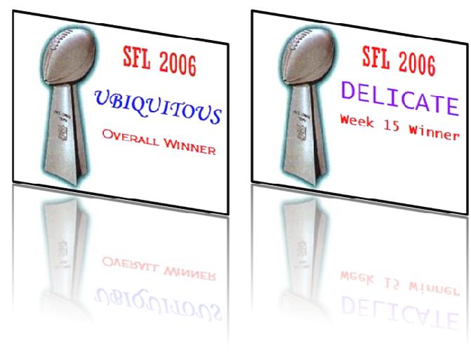 Great Job Kc bro' i like the way u have the SFL winners name ...but bro it's not fair cuz u didn't do anything special when i was on 1st place last week ....just joking .... Laley bro wats happening to u n me man .we were at 1st positon for 7-7 weeks .... we r going down like just like ur Atlanta n MY Broncos ....but my BRONCOS will make it to playoff Go broncos