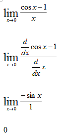 lim (Cosx-1)/x = Lim -(x/2!) + (x^3/4!)-...............= 0
