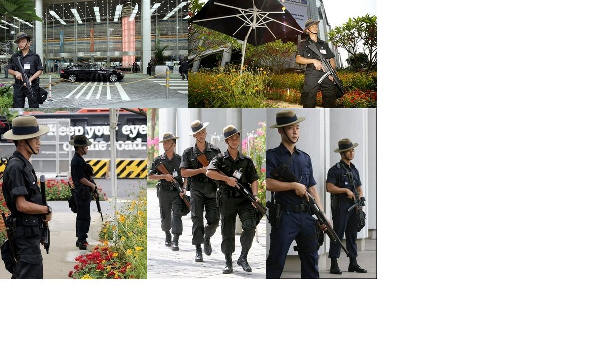 Gurkha paramilitary police patroled the Suntec City Covention Hall where the IMF-World Bank Meetings was held, Wednesday Sept. 13, 2006 in Singapore. The city-state is mobilizing its entire police force and its reserve police national service numbering over 10,000 to provide 24-hour security for the meetings, which are expected to gather 16,000 delegates and visitors from all around the world over the week. With Gurkhas being seen patrolling around the IMF- World Bank Meeting Venue the expectation of demonstration by the protestors was not seen or heard. Before the meeting large number of people had planned to protest as usual as at every IMF-World Bank Meeting. The word Gurkha, the distinguish felt hat and the mere sight of Khukri was enough to deter the protestors away.