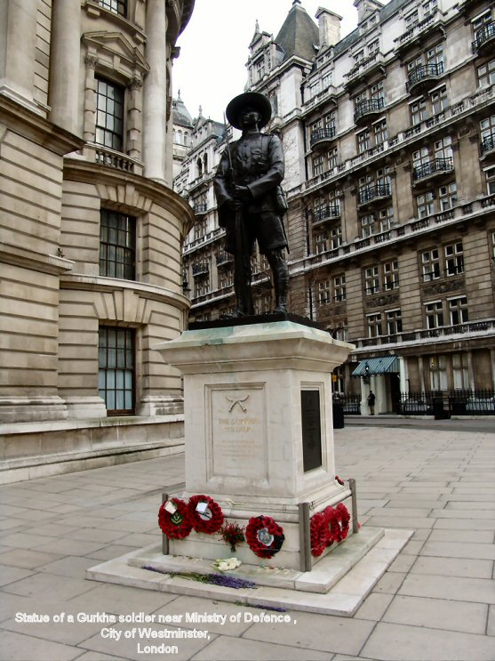 The nine-foot Gurkha statue was sculpted by Philip Jackson and is located in London's Whitehall. It was commissioned by the Gurkha Brigade Association Trust and unveiled by the Queen accompanied by the Duke of Edinburgh and Prince Charles, who is Colonel-in-Chief of the Royal Gurkha Rifles.