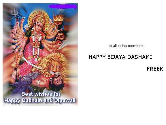 I hope this Dashain will bring PEACE to our minds and PEACE will prevail in our country. Happy Bada Dashain to all the sajhaities!