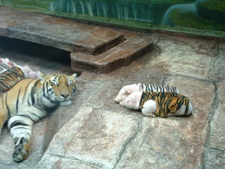 The mixture of tiger and piglets depicted in the images above therefore was not something undertaken for functional reasons, but rather it's a common form of visual entertainment provided by the zoo for the amusement of its visitors. According to the Pattaya Mail, these tiger-pig nursing relationships have also been reciprocated to the extent that the mother tiger shown suckling piglets was herself nursed by a sow: