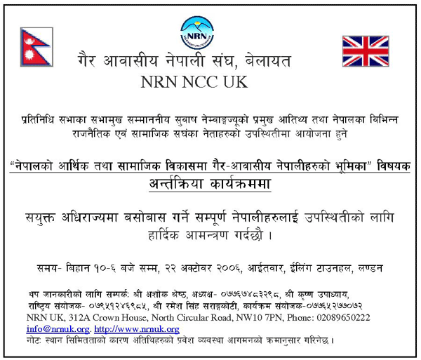 2. No surprise that selfish bastards at NRN who only care about dual citizenship and their influence in nepalese politics have decided to invite these leaders at this time. If they're really for the betterment of the country, why can't they see that this isn't the right time to invite leaders for parties in london.