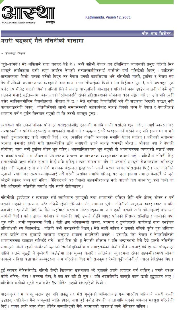 Kudos to Anjana. tyai ho Nepali ko aukaat. We're poor- but also not the type that'll take shit from someone for no good reason- especially Indians who speak in Hindi in OUR offices? Burn bitch!