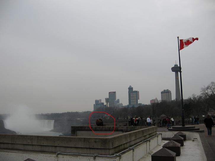Canadian Falls and Niagara Tower in background, of course with Canadian Maple leaf.