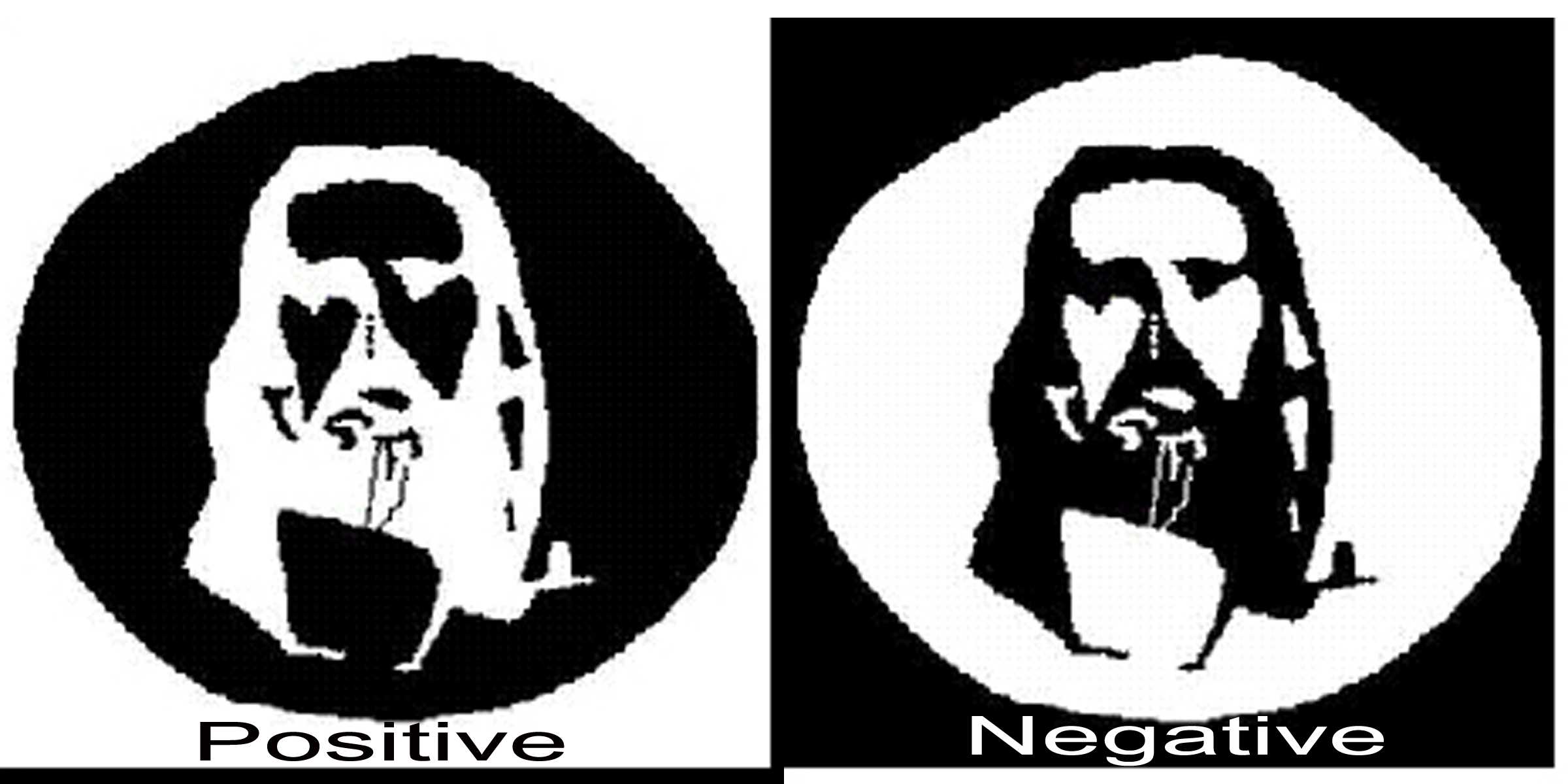 The hidden clue is revealed when the picture is inversed by photoshop into into its negative as seen below