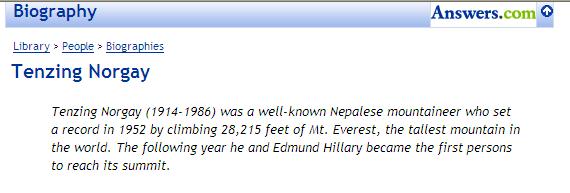 About Tenzing Norgey: Born in Nepal, moved to Darjeeling and lived all his life there.