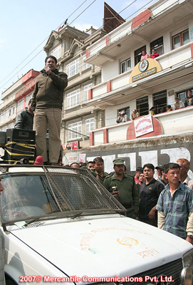 DO YOU KNOW ANY COUNTRY IN THE WORLD WHERE THERE ARE TWO PARALLEL GOVERNMENTS AND BOTH ARE ACTUALLY WARLORDS AND TERRORISTS? THAT BOTH THE GOVERNMENTS TALK ABOUT DEMOCRACY AND NONE OF THEM BELIEVES IN ELECTIONS AND FREE VOICE. IT IS NEPAL! In the above picture...see the Maoist Policemen holding walkie talkies. Yeah! same terrrorists and warlords that have killed 30,000 Nepalis. IT HAPPENS ONLY IN NEPAL!