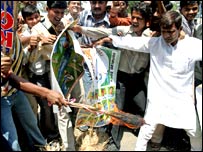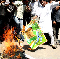 कहिले धुपबत्ती बालेर फोटो अगाडि लम्पसार पर्ने, कहिले त्यै फोटोको राँको धन्काउने । धन्य छ हाम्रा छिमेकीलाई । Expressing anguish over the poor performance of Indian cricket team in its first against Bangladesh, cricket lovers across the country on Saturday held a protest march and burnt posters and effigies of Indian players.
