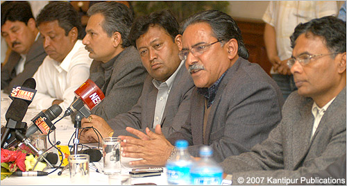 Beginning of a failure on part of maoists: look at prachanda..he looks so desperate to prove his innocence in front of the media.People arent buying it anymore,you are a lost case. Maoist party has turned into a mafia syndicate now,lot of down trodden and poor people trusted them as being their messiah to begin with. They have already lost their strength in the Terai,all the maoist goons are in kathmandu's hotels only.People should rise against them and chase them everywhere possible,organise protests.Political parties are caving too much into prachanda's threats. It's about time some leaders with good moral characters stood up to lead this fight to getting rid of hooliganism that's plagueing our society. Sign me up: I will join you.