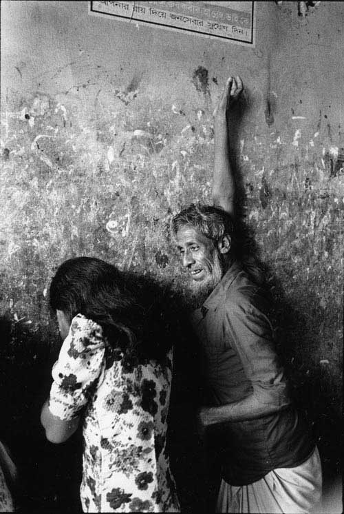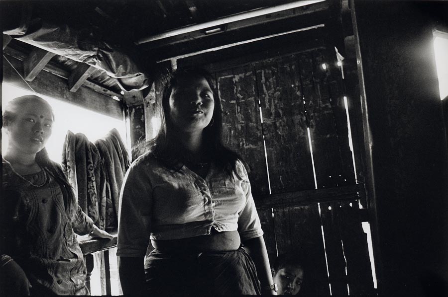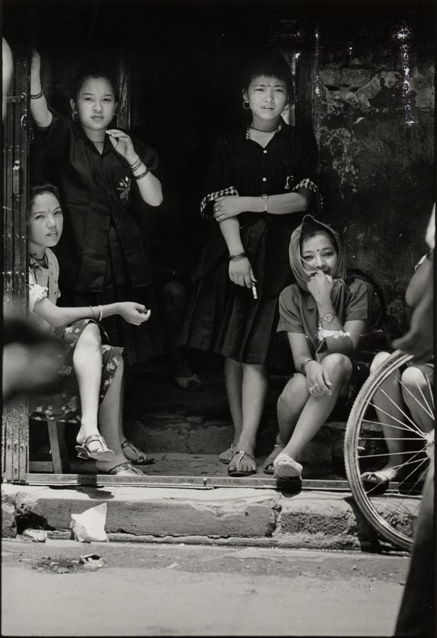 A group of Nepalese young girls standing and waiting for clients at the entrance of Sonargachi brothel in western city of Calcutta. These girls are being trafficked into India with promises of jobs in big cities. The demand for beautiful looking Nepalese women is very high in Indian brothels and the business of trafficking of girls from Nepal and other neighboring countries is well established - some rural communities in these poor countries have been selling their children into prostitution for generations. Some Indian brothels have an infection rate of HIV as high as 75%. Once infected and sick by AIDS, these girls are usually replaced with fresh ones. Infected ones are send beck to their villages or rural communities, where once again prostitution is taken up, if not as a primary occupation, as part time. This pattern spreads infections in such remote communities where getting treatment, even for minor infections or disease, let alone HIV/AIDS is considered a dream.