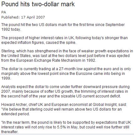 I dont know what sort of implications does pound reaching a benchmark of $2 has. But I think it is not good news. Although i am not an economist.