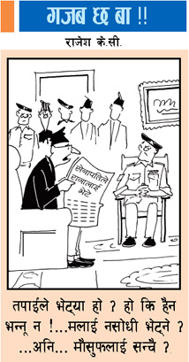 Thanks for posting that cartoon,Gahugoro. Nice one by Rajesh KC :) A tempest in a tea cup perhaps or a shrewdly calculated political move on the part of some? Looks like the comrades have learnt the art of state-craft pretty quickly.