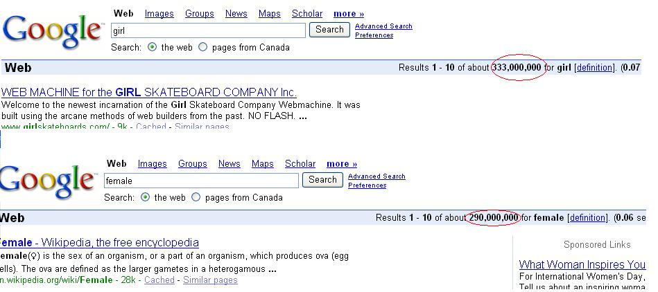 No I was wrong. I tried both keywords . Google shows more gals than female.So we should go for a girl.