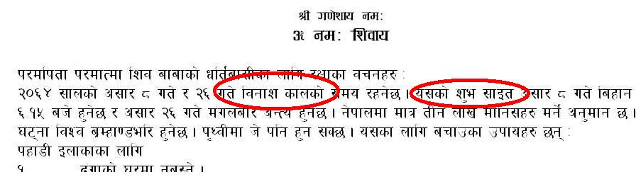 HE THINK THAT BINAS KAAL KO PANI SHUBHA SAHIT HUNCHA JAYA SHIVA BABA