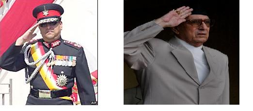 See the picture yourself.... One know how to salute ( at least makes decision in oneself ).... the other, Even doesn't know how to salute (runs on other's decision) , being STUPID priminister....( lack of confidence even while saluting) ( by the way, this salute means the salute to Nepal Govt...not King or anybody...just a reminder) dubai leh janatako lagi sochenah ...but the *Hawaldar* leh chaahi aati bigaryo desh lai...