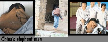 ..Doctors in southern China are preparing to operate on a man who suffers from the world's most extreme case of elephantiasis of the face. Huang Chuncai, 31, also known as China's elephant man, plans to undergo surgery in Guangzhou that will remove the 15kg tumour that has crippled him and left him ostracised from society. The weight of carrying the tumour on his face has deformed his backbone, stunted his growth and left him in continual pain.