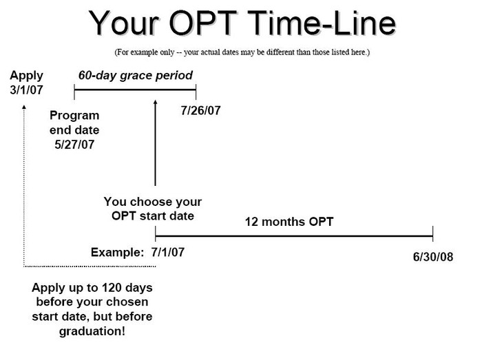 Please do remember that OPT is not the prime object of your student status. a. PRIME OBJECT of the STUDENT STATUS is COMPLETION OF DEGREE. YOU DID NOT COME HERE TO WORK. YOU CAME HERE TO STUDY b. POST COMPLETION OPT was awarded based on the FACT that YOU WILL COMPLETE ( before the OPT START DATE) /(HAS COMPLETED by the filing date) your DEGREE. c. ANOTHER VERY IMP. factor is that OPT is awarded ONLY for WORK in Related FIELD. d. when you apply for your POST COMPLETION OPT. remember that you adviser has to sign a PAPER saying that the DATE OF COMPLETION is [SUCH and SUCH]. [ we all know what we are facing in the states and how OPT and work-permit or H1-B are (mis)used. ] anyway regardless of what it is please do not take anything personally. we are just presenting facts that we are aware of. If i understand correctly, my statement regarding 60 days is in question. i very well understand why it is. and basically it is my ERROR in presenting the days. and thank you for pointing it out. ( AND this serves as a reminder to me to read before what i post. actually, my 60 day shortened the time of period of filing. [@ least no harm done] ) Here are the facts: a. you can apply up to 120 days before your OPT Start date. b. Date of completion is the day you fulfilled your DEGREE Requirement. c. you cannot apply OPT after you FULFILLED your DEGREE Requirement. d. there CAN be a GAP of 60 days between the day you FULFILLED your DEGREE Requirement AND OPT start DATE. e. OPT START DATE cannot be EARLIER than the day your DEGREE REQUIREMENTS ARE FULFILLED please refer to following link for more information: and i am attaching a picture which will explain the date in QUESTION.