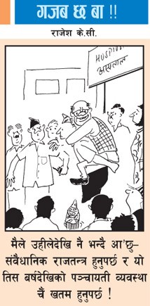 CAPTAIN you didn't know , our whole purpose of being here is sajah is to entertain you . haha..lessons from past should be taken seriously and comparision is Human nature.I being a selfish humanbeing liked panchayat compared to now cause at least i could go to airport without anybandh.Very simple.But as system may be it had lot of flaws. Wouldn't you as person, loved to atleast work and run business peacefully in KTM?NO compare on that level.Lets not go too deep.