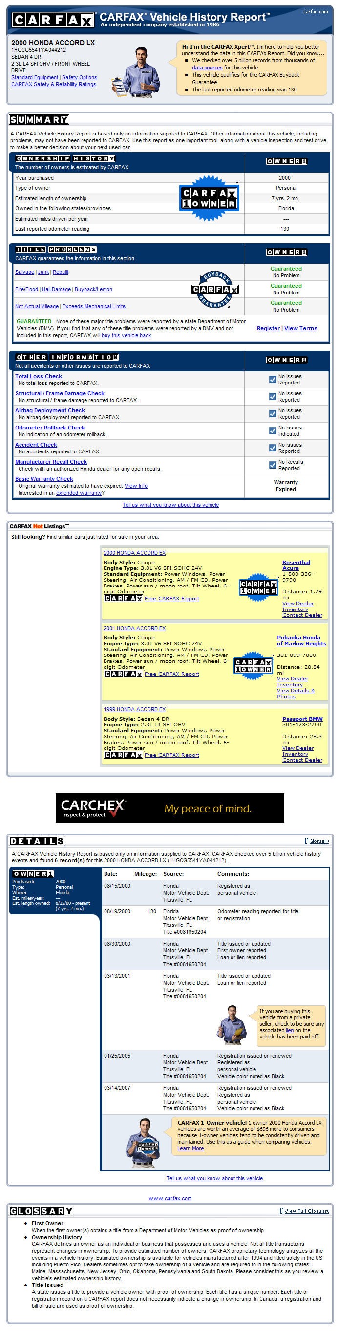 GUARANTEED - None of these major title problems were reported by a state Department of Motor Vehicles (DMV). If you find that any of these title problems were reported by a DMV and not included in this report, CARFAX will buy this vehicle back.