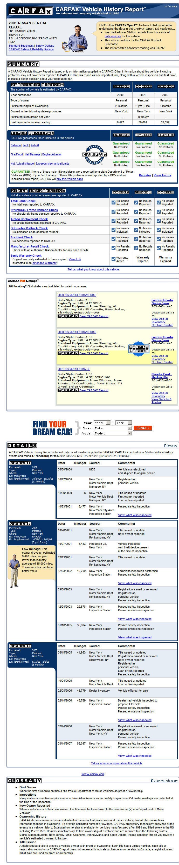 A CARFAX Vehicle History Report is based only on information supplied to CARFAX. CARFAX checked over 5 billion vehicle history events and found 23 record(s) for this 2003 NISSAN MAXIMA GLE/GXE/SE (JN1DA31D23T504931).
