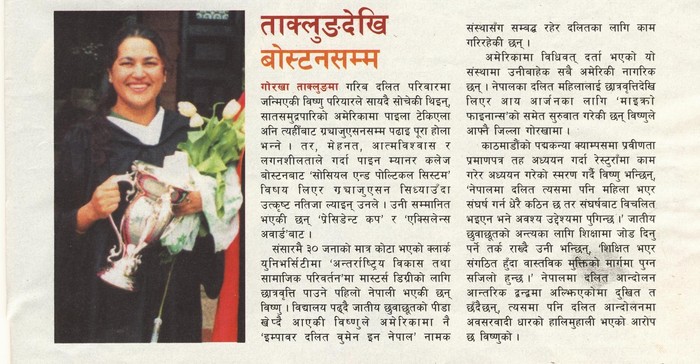 Here are the very prestigious international awards she recieved for her excellent work in Nepal