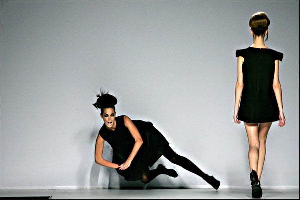 she was wearing high heels for the first time and trying to do a biralo walk so stumbled over